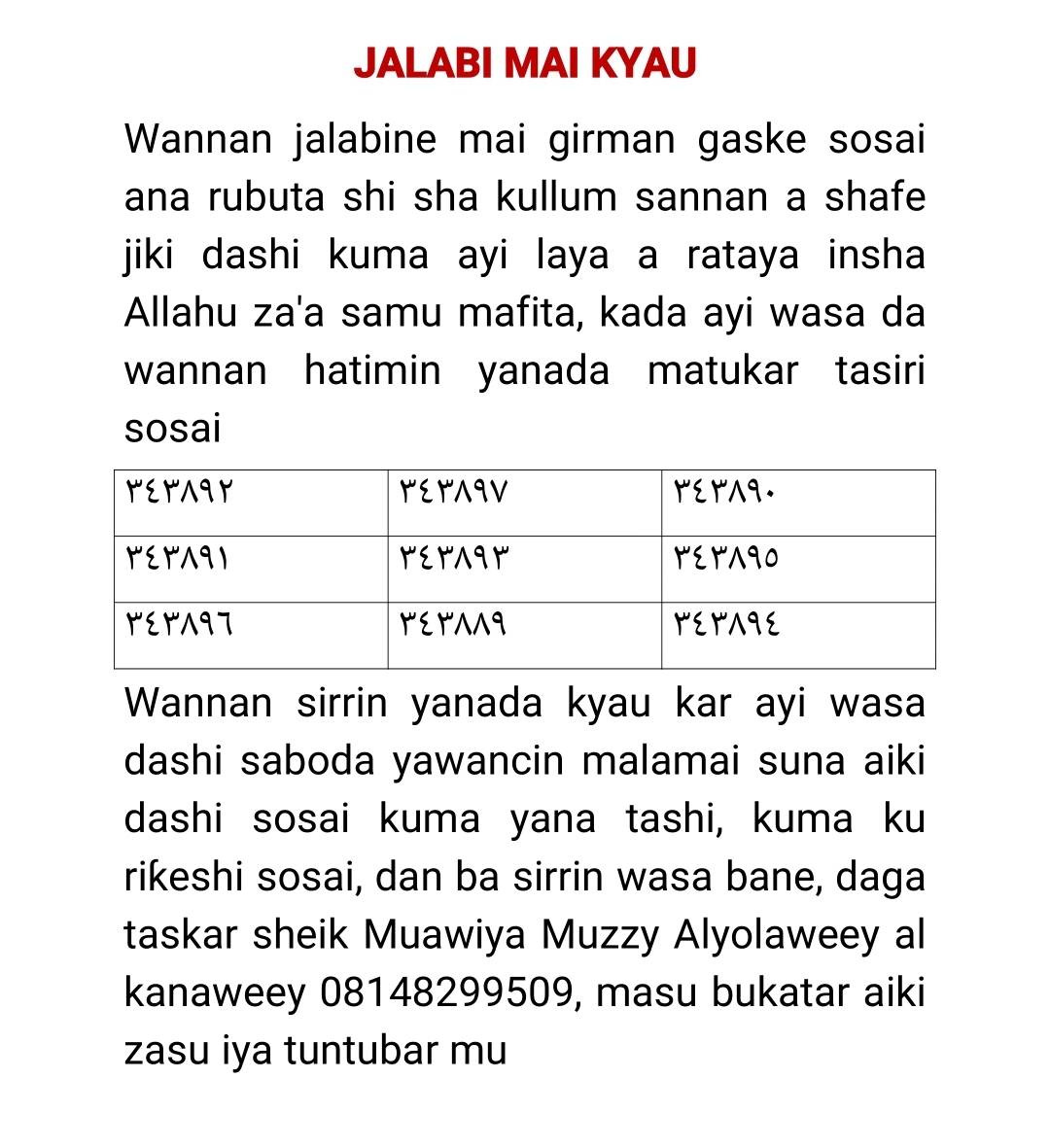 Ga masu bukatar jalabi da kuma dafai wanda zai taimaka musu sosai a rayuwar su